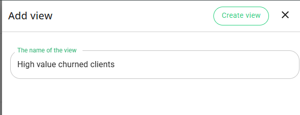 • Kliknij „Create view” i nadaj mu nazwę, np. high-value churned clients.