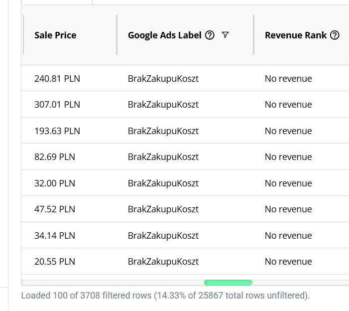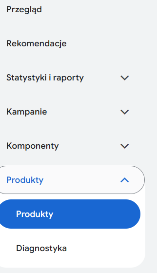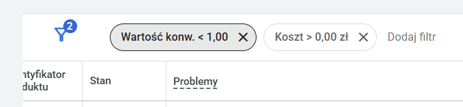 Produkty niegenerujące przychodu możesz to sprawdzić ręcznie w Google Ads: